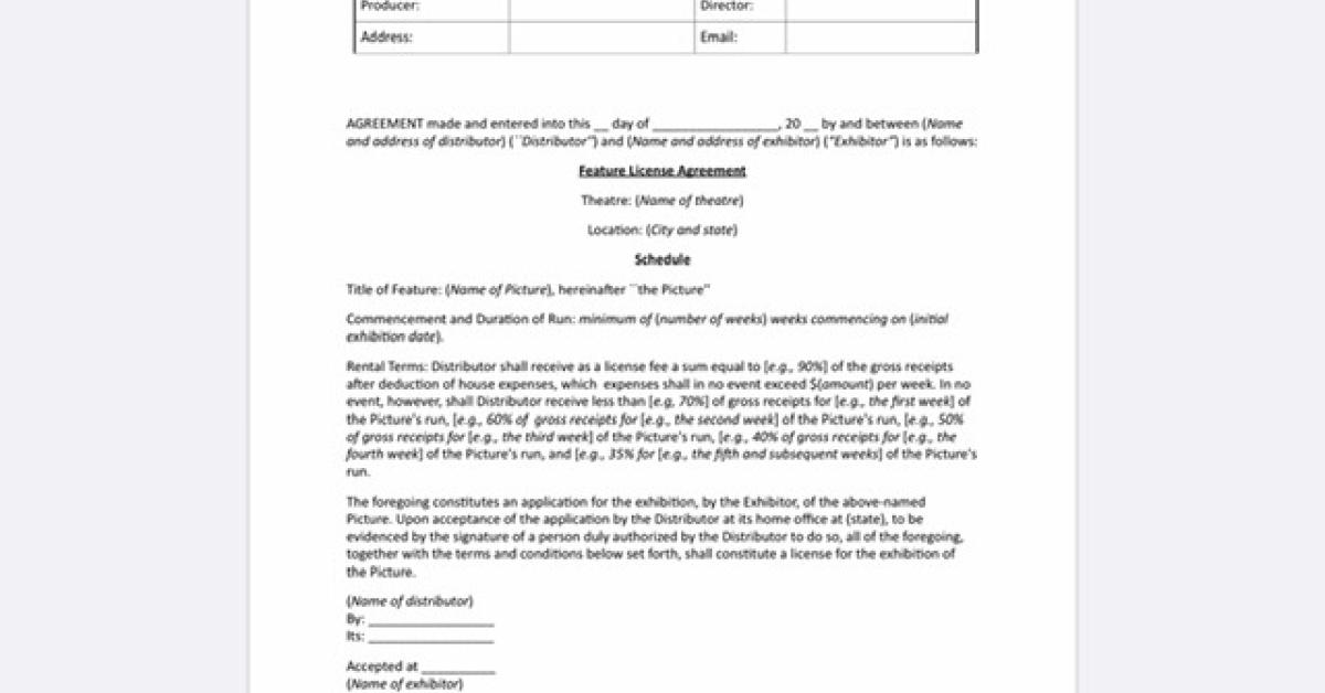 Example Exhibition Agreement of your Film in Cinemas Film Distribution Contract Challenge Add to cart Price 39,00 $ Distribution Contracts