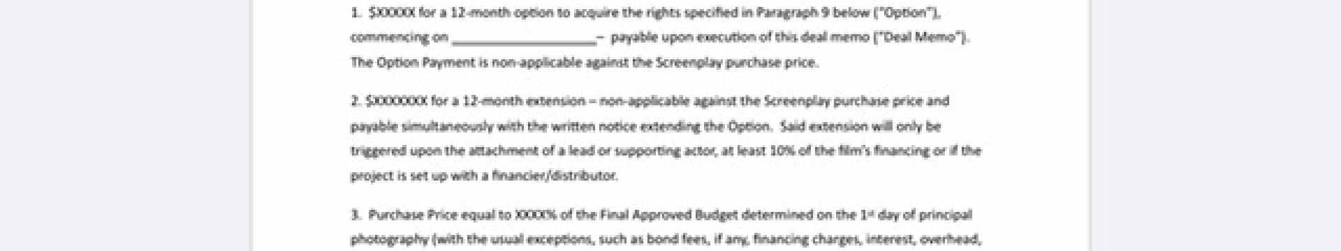 Agreement between Scriptwriter and Production Company / Producer to buy the film script