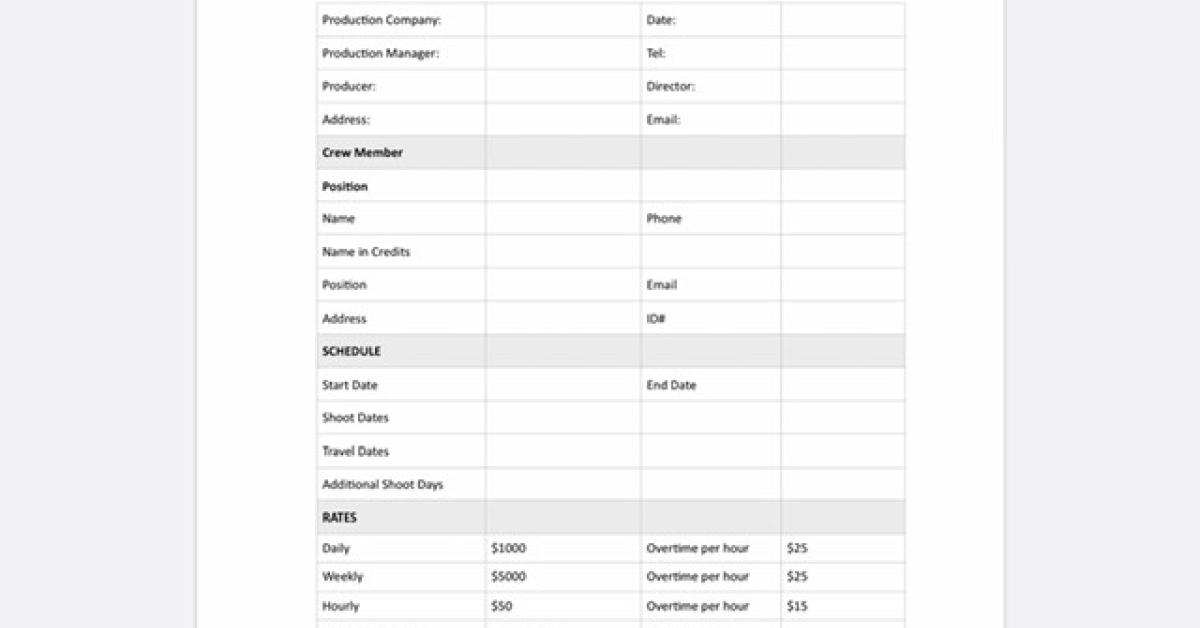 Film Production Deal Memo for your Crew * Included in the Film Business Plan Pro Package Film Crew Deal Memo Template Challenge Add to cart Price 59,00 $ Film Contracts