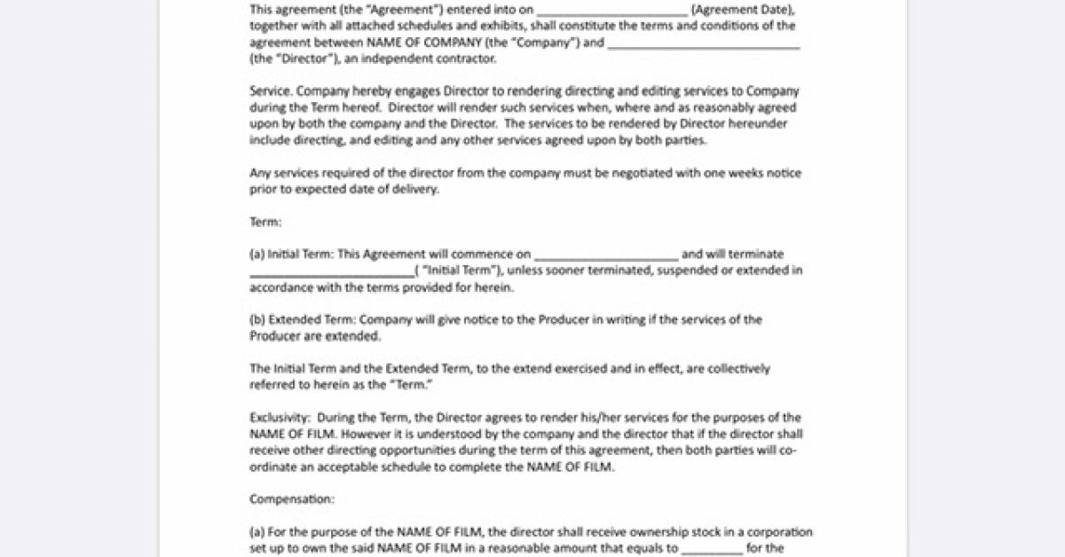 Production contract with the Film Director on delivery and expectations of services Film Contract Template Challenge Add to cart Price 59,00 $ Film Contracts